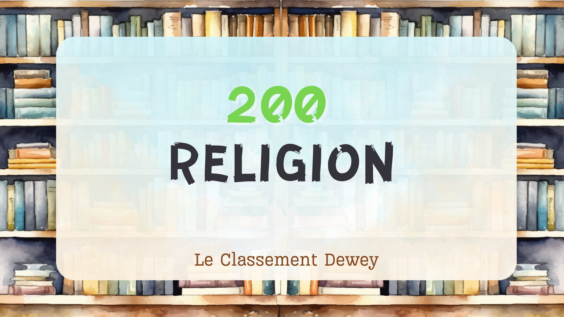 La catégorie 200 dans la classification décimale Dewey regroupe tout ce qui concerne la Religion. C’est une des dix grandes classes principales qui organise l’ensemble des connaissances. Elle traite des croyances, des systèmes religieux, des pratiques spirituelles, ainsi que des questionnements théologiques et des textes sacrés.